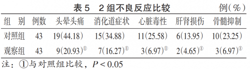 观察组不良反应发生率均低于对照组,且P<0.05。见表5。